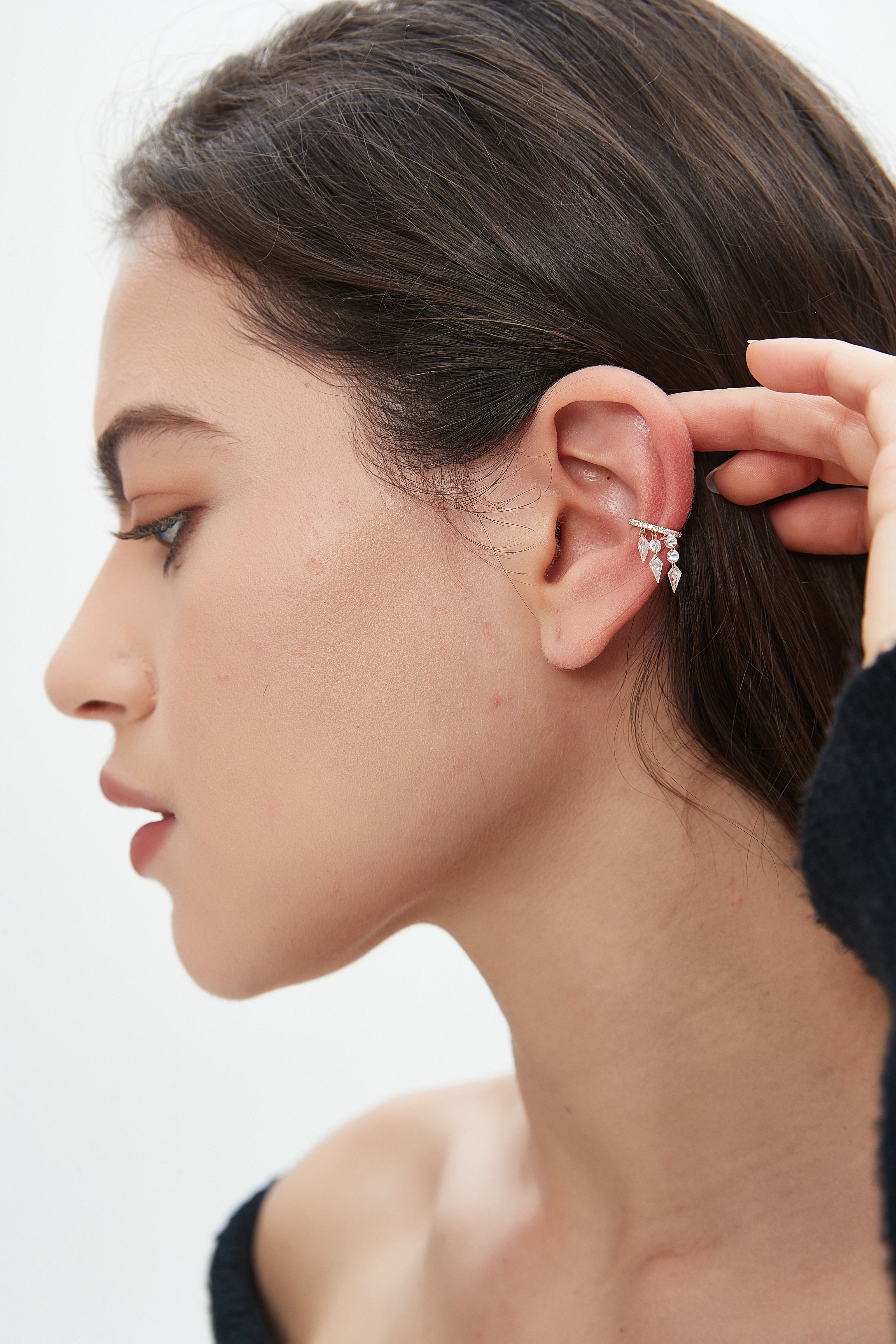 A thousand times yes. This clicker earring was exactly as described and the 5 marquise diamonds fit perfectly on my little rook piercing. The clicker isn’t too difficult or too easy to pry open, and it feels secure in my ear. The diamond selection is even, white and sparkly. Gorgeous standout piece and I’d definitely buy another.