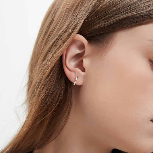 Floating Five Pear White Diamonds Charm Hoop Earring