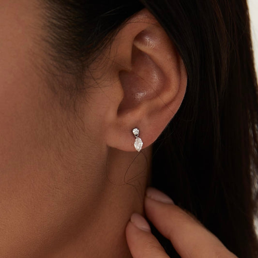 Ohrstecker mit birnenförmigem Diamanten im Stufenschliff und Gewinde