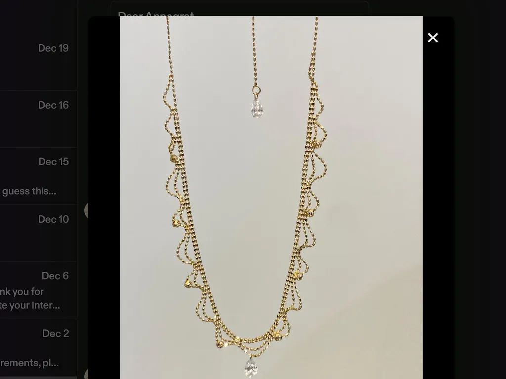 As always, Frances was beyond helpful, kind, and inspiring, when we decided to do the same change as we did with the bracelet……replace the gold bead at the end of the chain with a smaller “dew drop diamond”…..the effect is lovely; especially if you like to put your long hair up as much as I do 💕