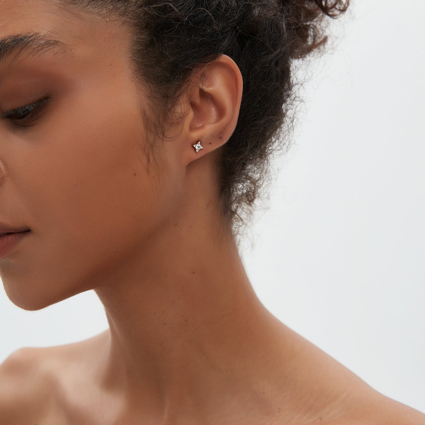 This brilliant ideal cut natural diamond star earring appears to naturally on the ear, which makes the stone delivering a statement-making flash of light.